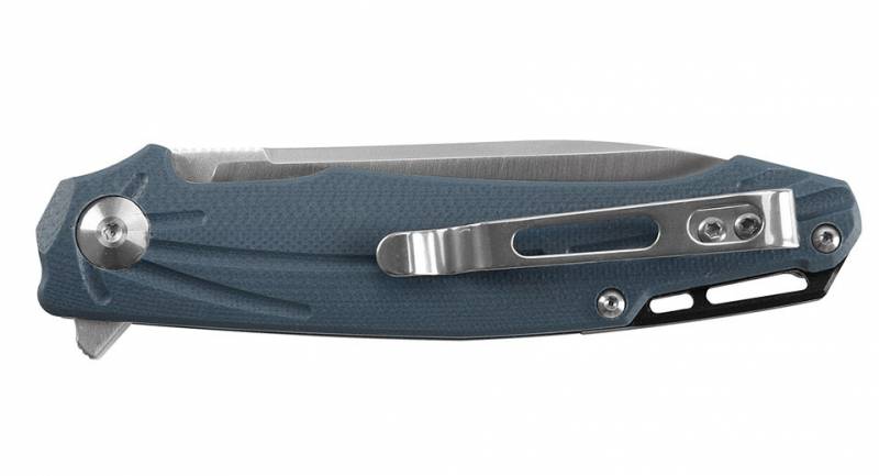Клинок новинки Firebird FH21-GY обладает хорошими характеристиками - универсальная длина, высокие прямые спуски и акцентированное острие, благодаря чему нож хорошо колет и режет. Открывается клинок при помощи плавника, который позволяет, в отличии от шпенька, использовать во время работы всю длину режущей кромки. Пушечный флипп обеспечивают подшипники, спрятанные между клинком и лайнерами рукояти.