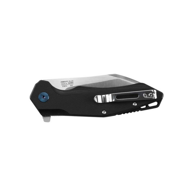Форма лезвия - это Wharncliffe. У ножа совершенно ровная и гладко заточенная режущая кромка. Две трети длины обуха, начиная от рукоятки ножа, также сделаны практически ровно, но затем выполнен резкий спуск к острию ножа. На этом участке клинка выполнено фальшлезвие. Размер лезвия модели FirebirdFH31 составляет 86 мм в длину. Толщина клинка достигает 3 мм. На завершающем этапе лезвие ножа отшлифовано путем сатинирования. После такой процедуры на поверхности металла остаются небольшие поперечные насечки, которые не влияют на гладкость клинка, но делают мелкие потертости практически незаметными.