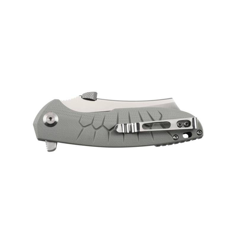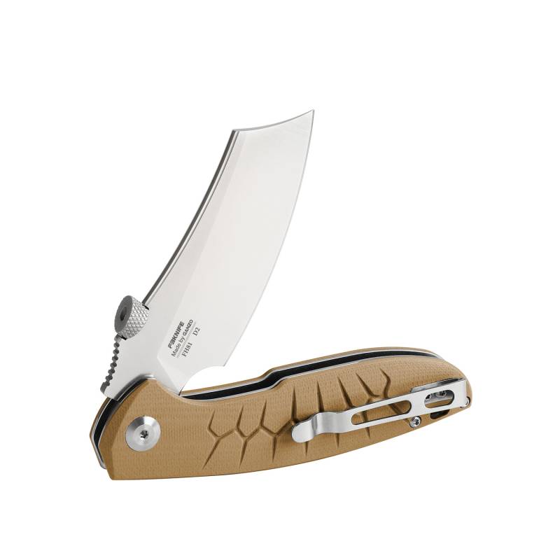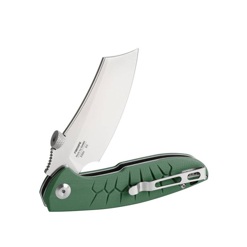 Материал лезвия - качественная коррозиестойкая американская сталь D2, которая славится отличной сбалансированностью и высокими режущими свойствами. Рукоятка ножа сформировано при помощи двух накладок из композитного материала G10, который обладает высокой прочностью, малым удельным весом, влаго-, термо- и износостойкостью, приятный на ощупь, не нагревается на солнце. Форма рукояти адаптирована для надежного захвата. Осевой узел реализован с использованием шариковых подшипников, благодаря которым раскрытие ножа приятно легкое и плавное.