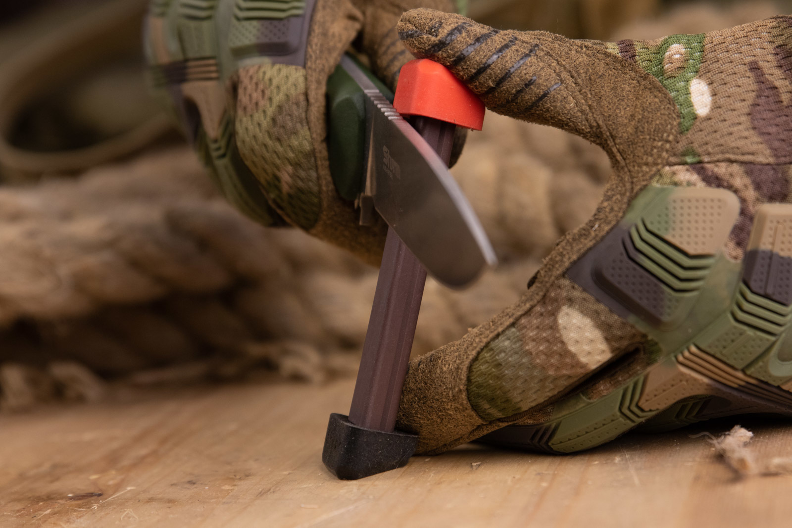 RZR-X3 800 grit - компактная керамическая точилка, предназначенная для быстрой и комфортной правки ножа как в домашних, так и в полевых условиях. Эта косточка мгновенно уберёт заусенец и вернет вашему ножу бритвенную остроту. Заточной инструмент представлен в двух вариантах: Medium (абразивность 400 grit) маркируется зеленым цветом, и Fine (абразивность 800 grit) маркируется красным цветом. Помимо обычной заточки навесу, удерживая точилку в руке, специальная конструкция торцевых упоров позволяет выставить RZR-X3 под углами 15° (для оптимального реза) и 20° (для тяжелых работ), обеспечивая простое удержание выбранного угла. Подходит для заточки серрейтора и рыболовных снастей. Как: Установите RZR-X3 на плоскую поверхность под необходимым вам углом (15° или 20°) и несколько раз проведите клинком по точилке с небольшим давлением, удерживая нож под прямым углом (90° / перпендикулярно) относительно поверхности. Повторите с другой стороны.
