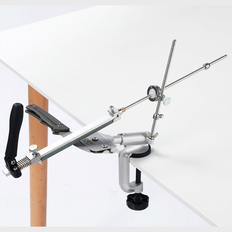 Модель RuixinPRO IV RX-008 — это новая модель "клона" на известную точилку Edge Pro. Она полностью выполнена из металла, новое 4 поколение из нержавейки + алюминиевый сплав. Основание точилки можно прикрутить к столешнице тисками, которые идут в комплекте.
