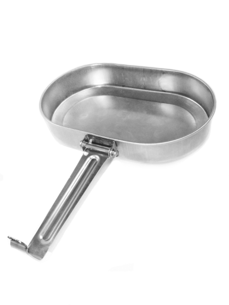 Состоит из двух предметов: Котелок овальный с плоским дном 1,7 л с ручкой для переноски и подвешивания над огнем Крышка 0,5 л с ручкой фиксатором Материал: пищевая нержавеющая сталь толщина 0,5 мм Поверхность полированная гладкая без вмятин, трещин, заусениц Упакован в чехол защитного цвета