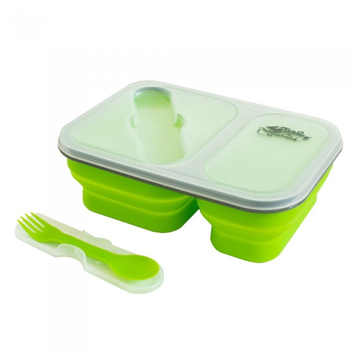 Объем: 900 мл. Материал: силикон, полипропилен. Контейнер складной (2 отделения). Может использоваться как походная миска, ланч-бокс. В комплекте ловилка.