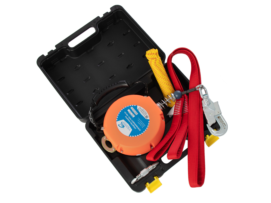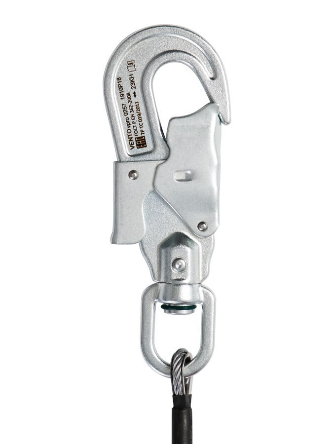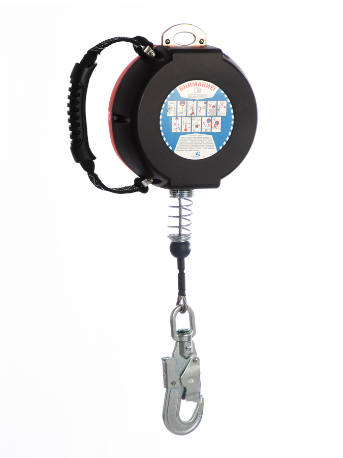 Инерционное блокирующее устройство для организации страховочной системы при работе на высоте. Оптимально подходит для эксплуатации в сложных условиях, в местах, где возможен контакт с агрессивными химическими веществами, при проведении сварочных работ или при использовании обрезного инструмента. Механизм защищен корпусом из композитного противоударного пластика. По мере необходимости трос свободно выдается из устройства и автоматически наматывается обратно. При резком увеличении скорости вытягивания стропы (при срыве) срабатывает функция торможения, прекращающая падение пользователя. Карабин на конце троса имеет вертлюг для предотвращения перекручивания стропы. Индикатор срыва находится на вертлюге. «НВ-10» комплектуется шнуром для вытягивания ленты, карабином «Стальной Овал» (арт. vpro 0013) и фалом крепежным (арт. vnt 257) для организации точки крепления. Устройство поставляется в специальной сумке для хранения и переноски.