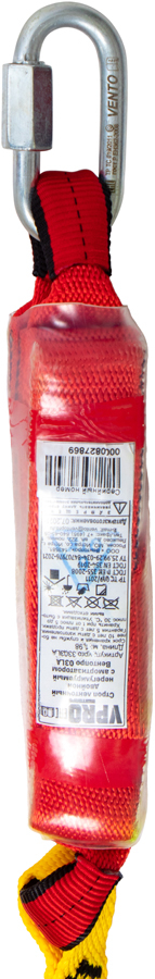 Вентопро 03LA — это двухплечевой строп с амортизатором из полиамидной ленты. Используется в составе страховочных систем. Состоит двух текстильных плеч, карабинов для присоединения к анкерной точке (раскрытие до 55 мм), амортизатора в защитном чехле и карабина для присоединения к страховочной привязи. Масса, г. 1385 Длина, м 1,98 Раскрытие карабина, мм 55 Наличие амортизатора Есть