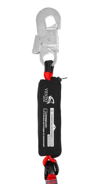 Эластичная лента укорачивает строп при отсутствии действия силы, внешняя трубчатая лента принимает на себя основную нагрузку в момент остановки падения.