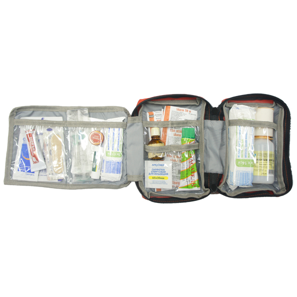 Особенности: Прочный материал Двухзамковая молния по периметру аптечки Большое количество эргономичных карманов из прозрачного материала. С тыльной стороны петли для крепления к снаряжению Материал: Оxford 300D PU (рипстоп) Вес 180 г Цвет Красный Длина / Ширина/ Высота 25 × 12.5 × 10 см