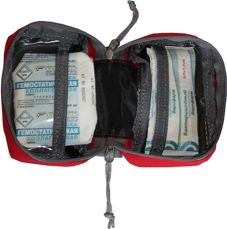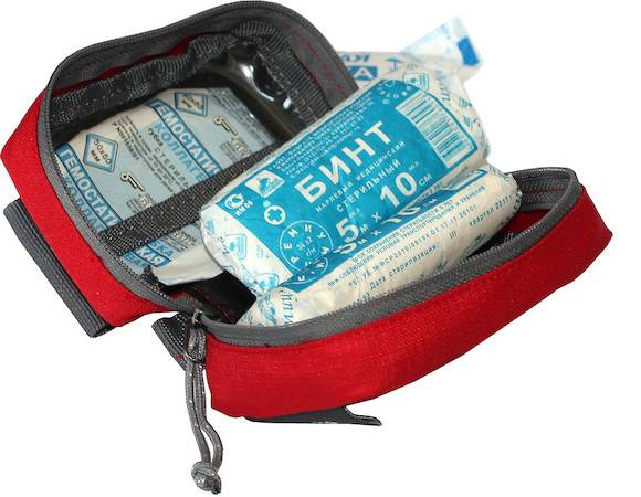 Аптечка индивидуальная малая. Рекомендуется для комплектования аптечки на мультиспортивных соревнованиях, на детских соревнованиях по спортивному туризму, а также при загородных поездках в лес, на рыбалку,за грибами и т.д. Удобная и компактная сумка для индивидуальной аптечки первой помощи. Крепление для переноски на поясном ремне. Цветографическая маркировка. Два прозрачных кармана. Два замка на молнии. Медикаменты в комплект не входят. Характеристики: Материал: Polyoxford 450 HD RS Размеры : 10 х 7 х 5 см. Вес: 0,07 кг