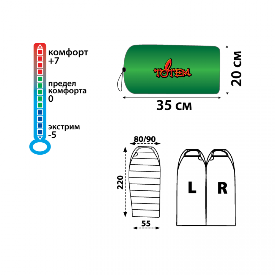 Спальный мешок хаки Totem Hunter весенне-осенний Кокон. Его форма обеспечивает комфорт во время сна, при этом экономит вес при транспортировке.