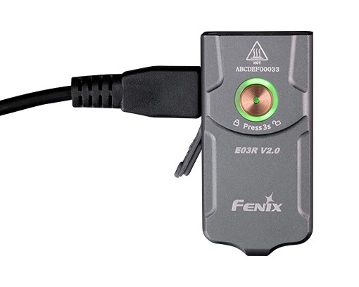 Фонарь Fenix E03R V2.0, кольцо для крепления на связку ключей, зарядный кабель USB Type-C, гарантия, инструкция.