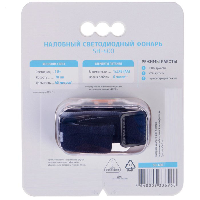 Фонарь налобный Фотон SH-400
