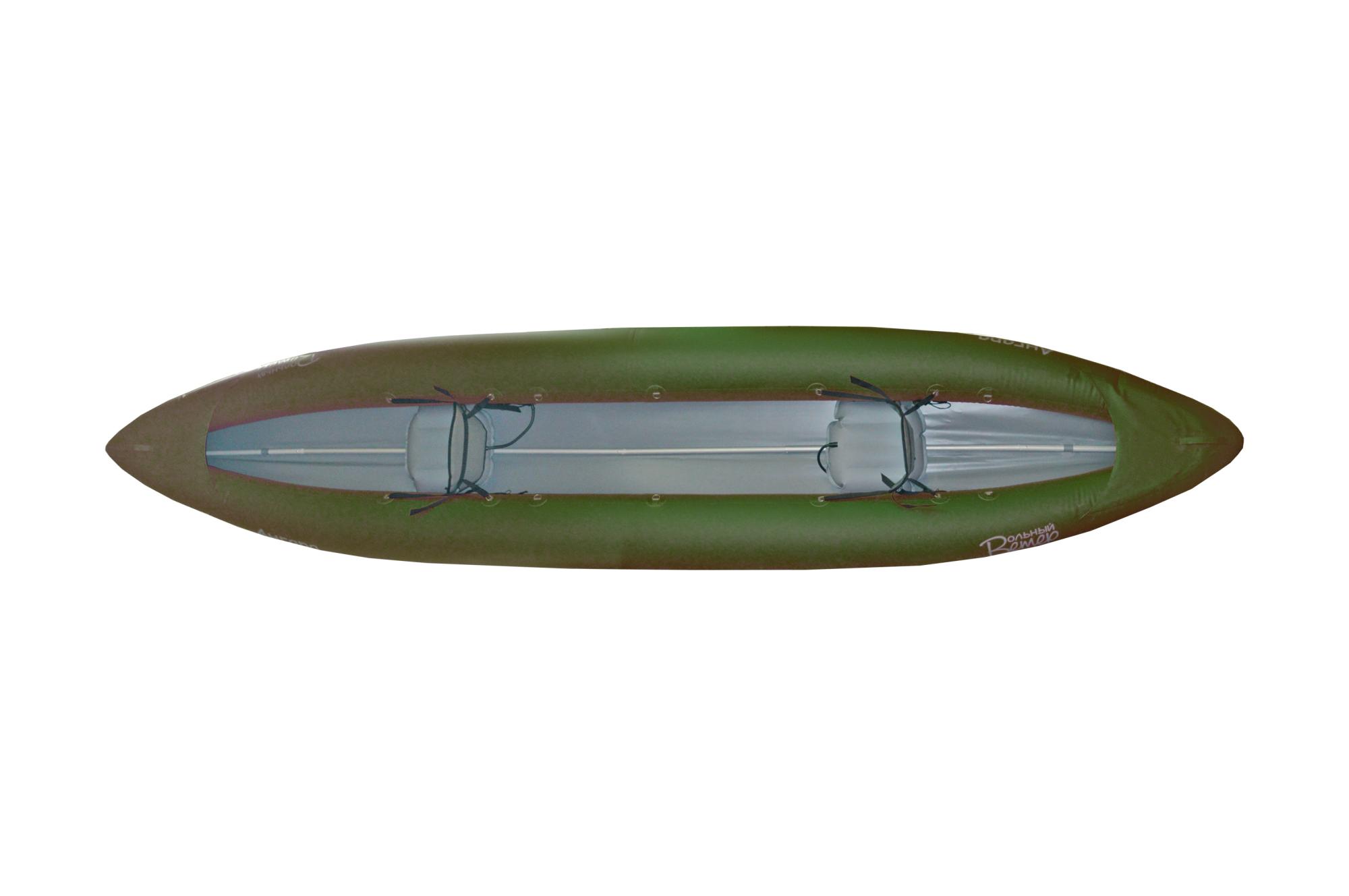 Сиденья - надувные, с подвесными спинками. Сиденья крепятся как к кильсону, так и к бортам байдарки. Сиденья и спинки при разборке байдарки можно не снимать.